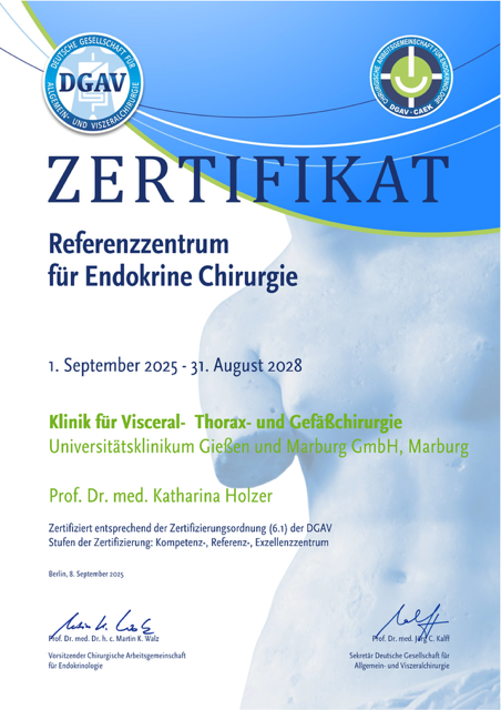 Referenzzentrum für Endokrine Chirurgie der Deutschen Gesellschaft für Allgemein- und Viszeralchirurgie.