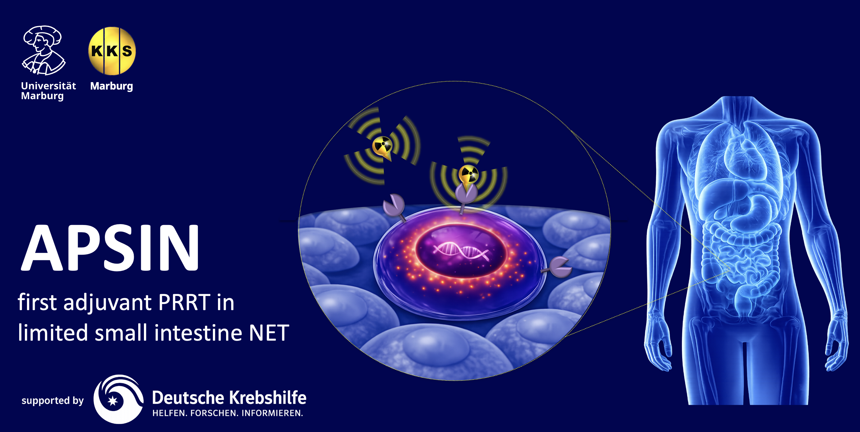 Wir freuen uns, dass nach langer Vorbereitung nun unsere prospektiv- randomisierte Studie zur adjuvanten Peptid- Rezeptor- Radionuclid- Therapie (PRRT) nach kurativer Operation locoregional begrenzter neuroendokriner Tumoren des Dünndarms (APSIN- Studie) gestartet hat. Es handelt sich um die erste europäische Studie zur adjuvanten Therapie bei diesen Tumoren.