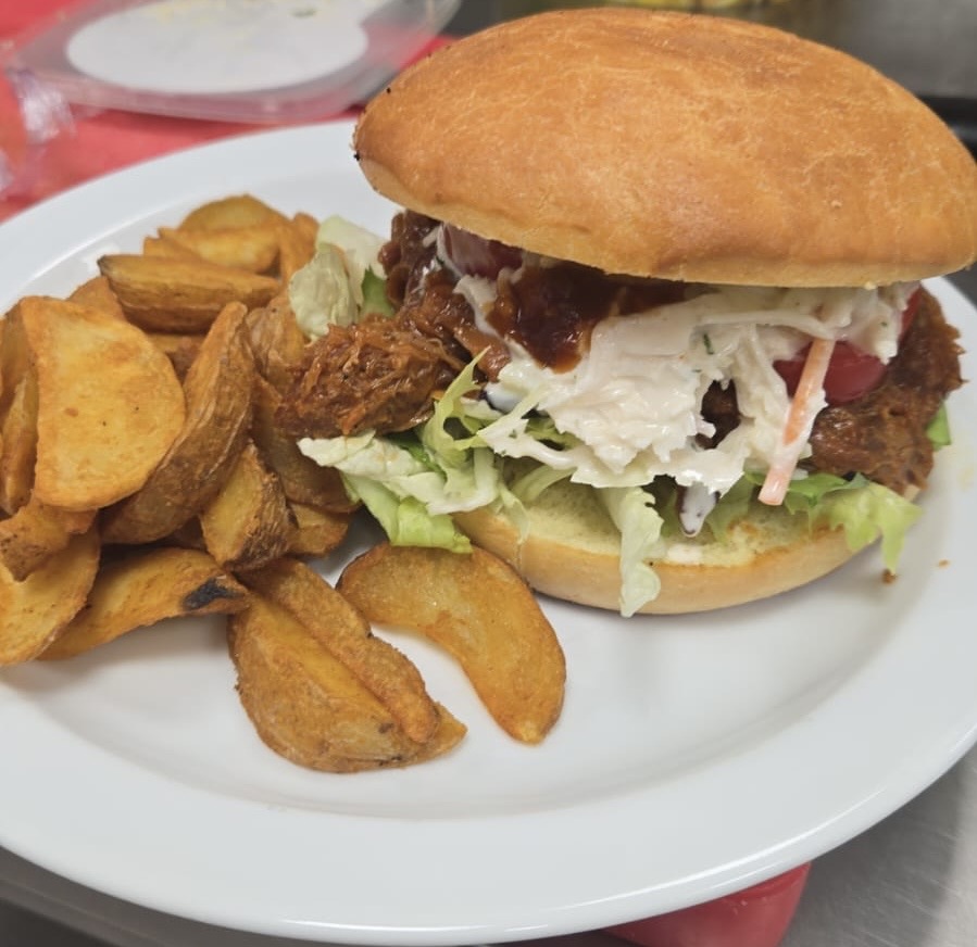 Pulled Pork Burger mit Wedges